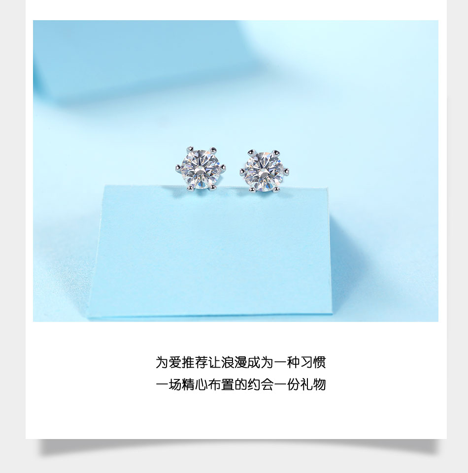 简约风轻奢S925银耳环女气质婚庆时尚高级感莫桑石简约六爪耳钉